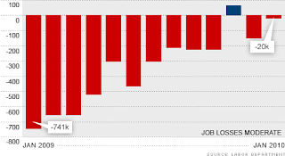 The unemployment rate fell unexpectedly in January to 9.7%. And businesses shed 20,000 jobs for the month, far fewer than the 150,000 jobs that were lost in December.